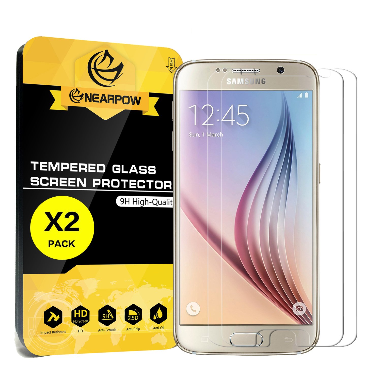 Nearpow Samsung Galaxy s6 vetro temperato pellicola protettiva(Si applica solo a Samsung Galaxy s6) - reale premium vetro temperato - 3D Touch compatible - 9H Hardness - High-risposta - Alta trasparenza